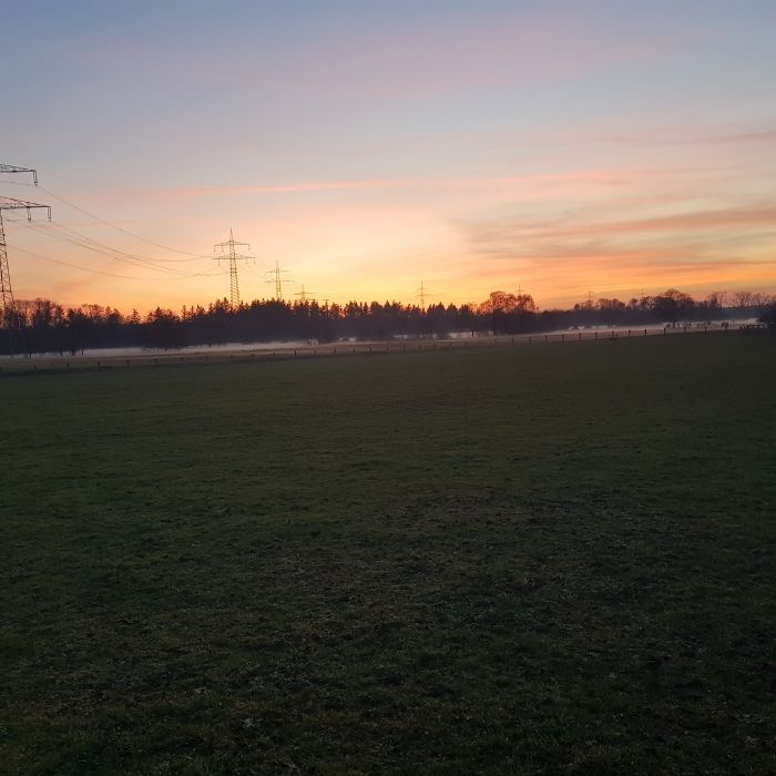 Am späteren Nachmittag radeln wir rüber nach Walldorf. Man sieht es kaum auf dem Bild, aber die Nebel steigen aus den Wiesen auf. Unglaublich schön!