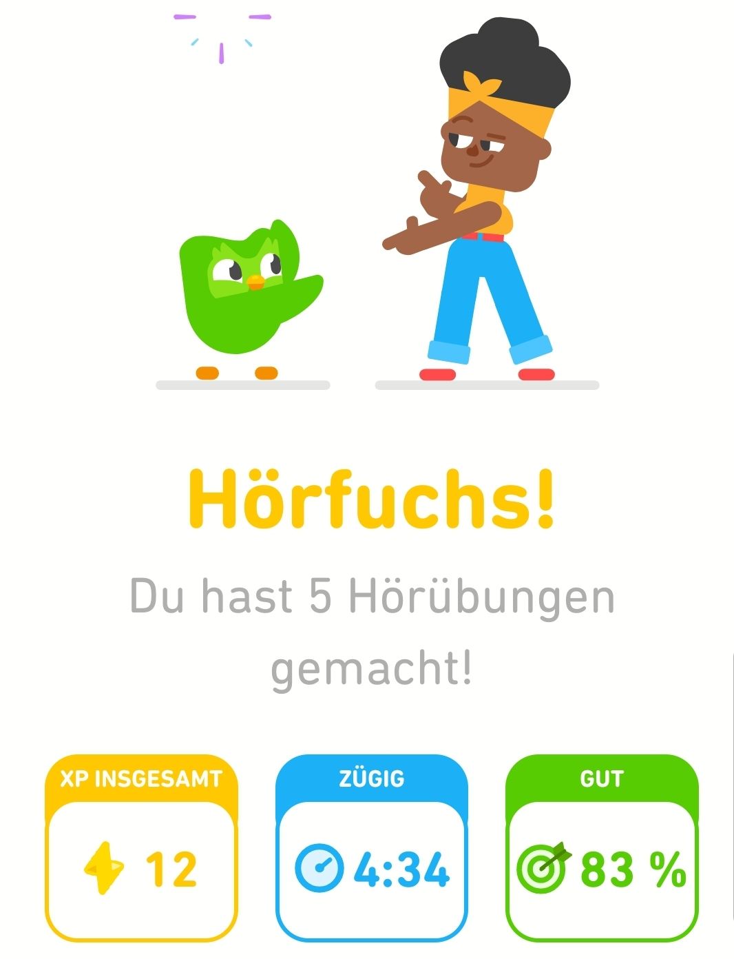 Gestern hatte ich zu spät an meine kleine tägliche Spanischübung gedacht. Ging nochmal gut, weil ich noch einen „streak on ice“ hatte, also so eine Art Joker. Aber heute hilft das nicht. Da der Ausflug zur Weihnachtsfeier nicht so lang war, reichte die Zeit noch für eine Lektion.