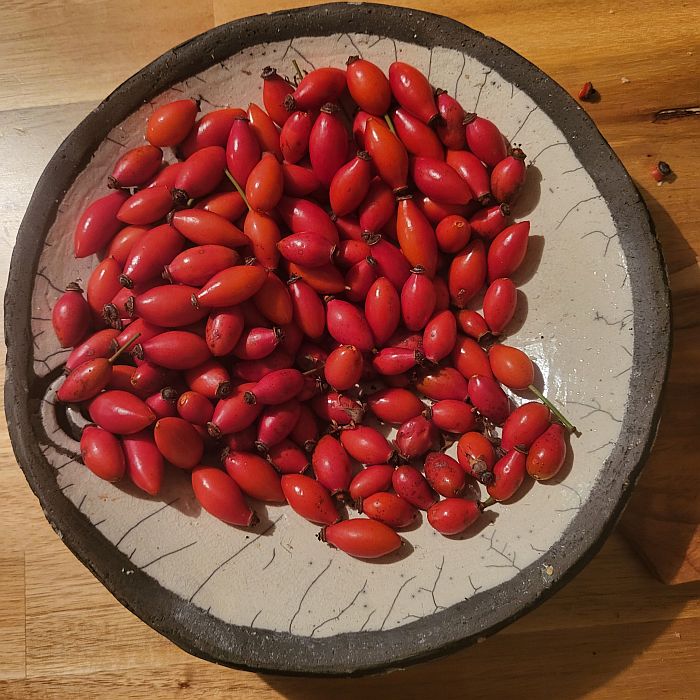 Das nächste Projekt: Hagebutten-Marmelade. Heute erstmal nur die Vorbereitung der Früchte. Mit der diesjährigen Quittenschwemme überlege ich, ob Hagebutte und Quitte wohl gut harmonieren.