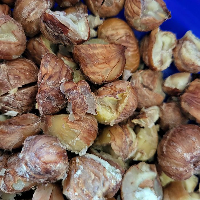Dann lieber Maroni schälen. Die hatte der Mann aus dem Pfälzer Wald mitgebracht. Gut, dass er heute nicht da ist, sonst hätte er womöglich beim Schälen helfen müssen.
