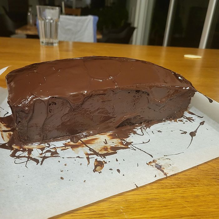 Nach dem Schälen habe ich die Maroni püriert und in einem Kuchen weiterverarbeitet. Und weil jeder Kuchen besser schmeckt, wenn er mit Schokolade bedeckt ist, gibt es noch ein weiteres Bild.