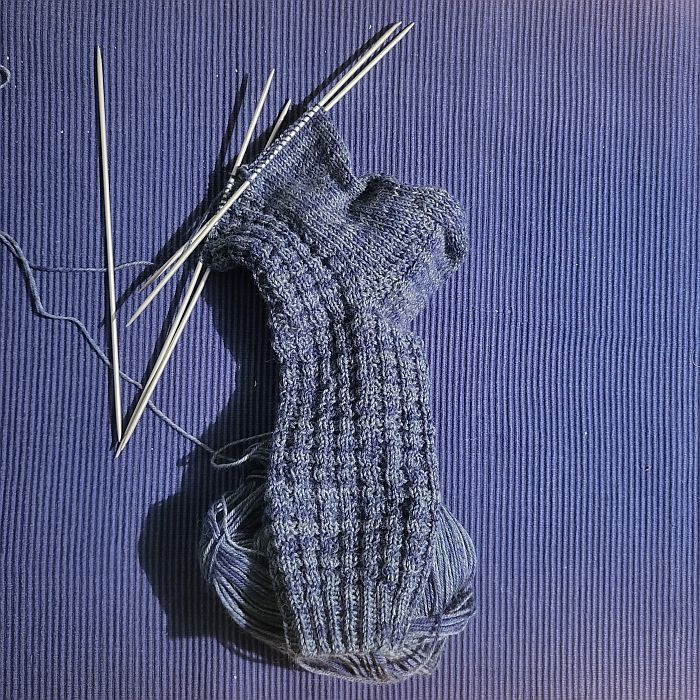 Stricken gehört für mich zum Herbst und Winter, wie der Sonnenaufgang nach der Nacht. Es beruhigt und gibt kleine Erfolgserlebnisse. Und dieses Mal gibt es eine geheime Verbindung zum 1. Bild. Denn am 22. Oktober wird das Reilinger Strickalong einen Ausflug ins Kino nach Ketsch machen. Die Kinobetreiber laden zum Strickabend ein. Ausgerechnet zu der Verfilmung von 22 Bahnen. So schließt sich für heute der Kreis.
