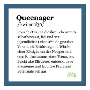 Queenager ist kein Status, den frau plötzlich und perfekt leben muss, sondern ein Entwicklungsweg und eine Haltung, in die jede Frau hineinwachsen kann. Es geht um Empowerment und Stärkung – insbesondere für Frauen, die gerade erst beginnen, ihren Selbstwert wiederzuentdecken und weiterzuentwickeln.